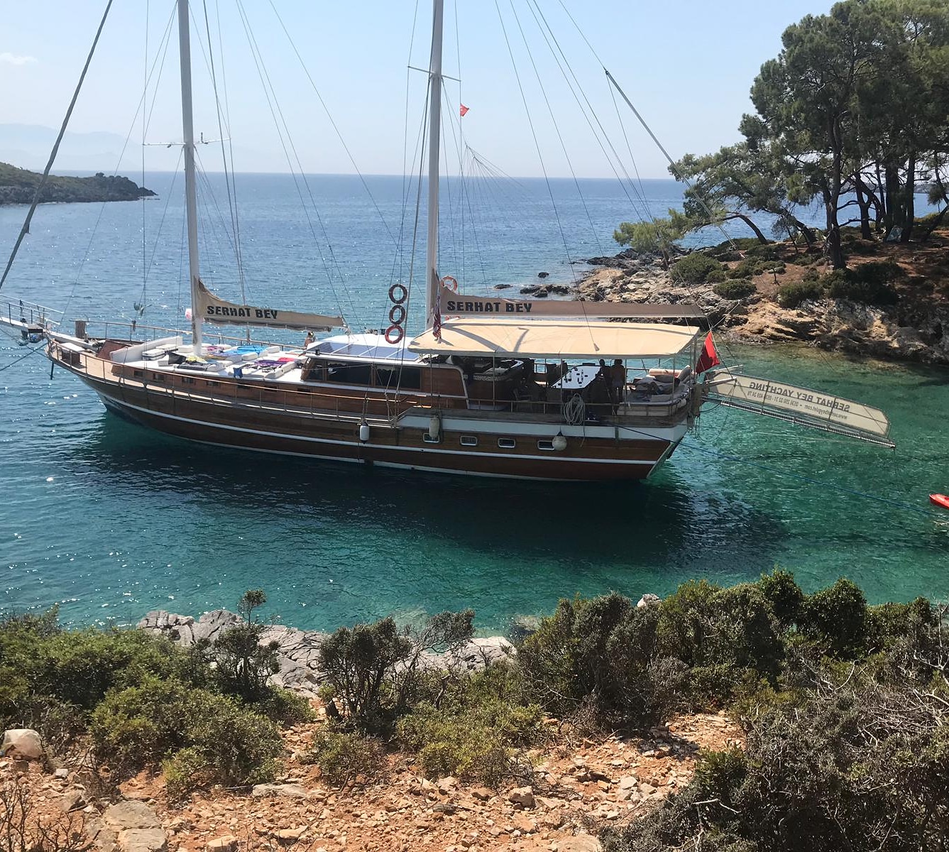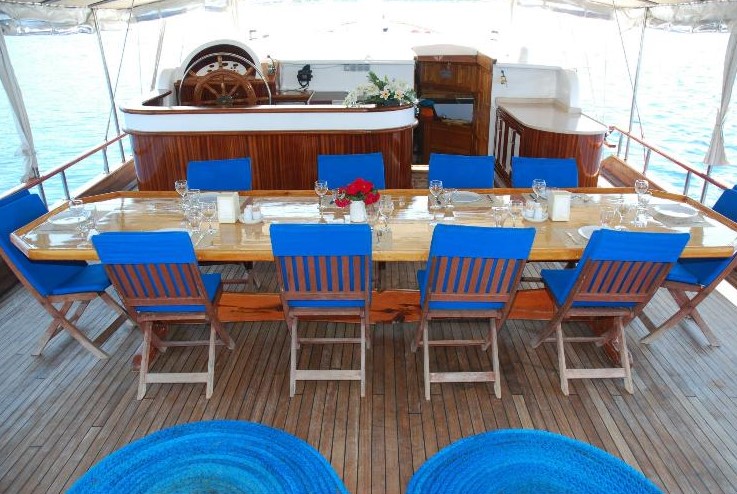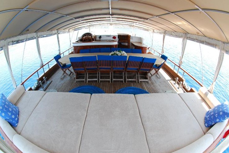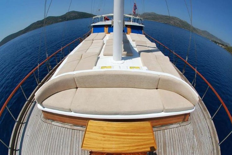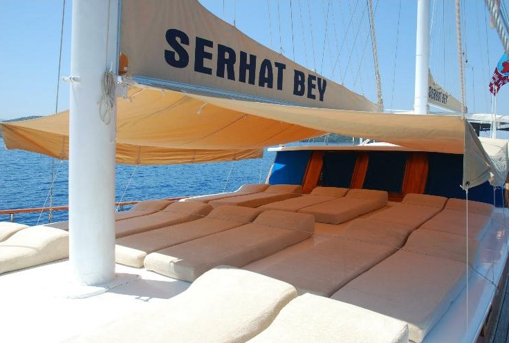 Die Serhat Bey Yacht, die 2013 komplett renoviert wurde und ihre endgültige Form angenommen hat, bietet einen blauen Kreuzfahrtservice mit 7 Kabinen und einer Kapazität von 14 Passagieren.
