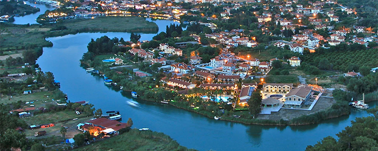 Köyceğiz gölünü Akdeniz’e birleştiren kanal üzerinde yer alan Dalyan, İztuzu Plajı’na yakın bir konumda bulunmaktadır.